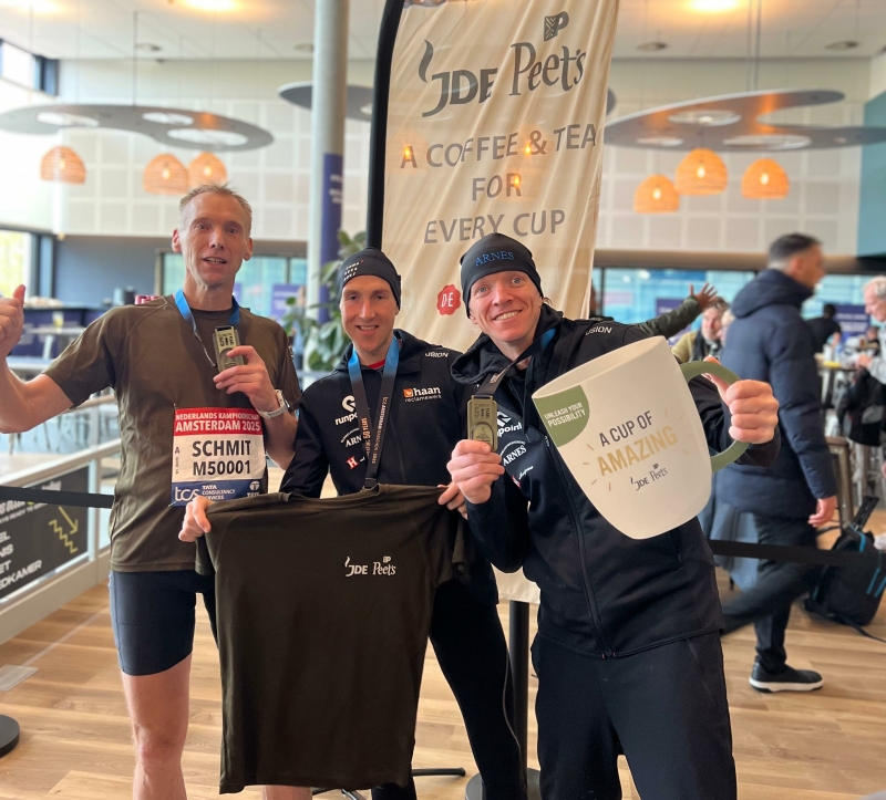 Trots en vooral dankbaar pronkten de mannen van Runpoint Racing Team na afloop dan ook met het eremetaal. Bij de nazit in het Frans Otten Stadion vereeuwigden Thys en Jelle deze epische herinnering samen met gastheer (JDE Peet's), marathongoeroe én bionic legend Martijn Schmit. Elke marathonmedaille symboliseert immers niet zozeer een triomfantelijke tijd als wel een hogere waarde: de concrete vervulling van een enerverend en homerisch reis- en verhalenavontuur dat maandenlang betekenis heeft geschonken.